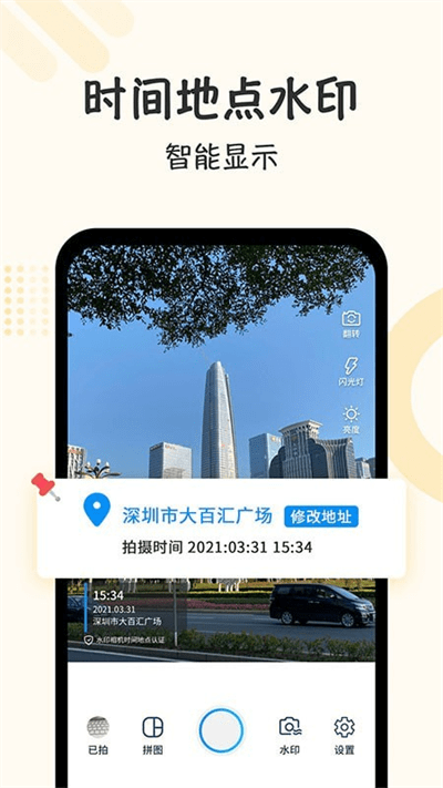自定义打卡相机是好用的水印拍照相机软件,为用户提供了非常强大的摄影功能,可以轻松生成水印照片,让你边拍照边打卡,外勤打卡更方便,满足不同用户的使用需求。