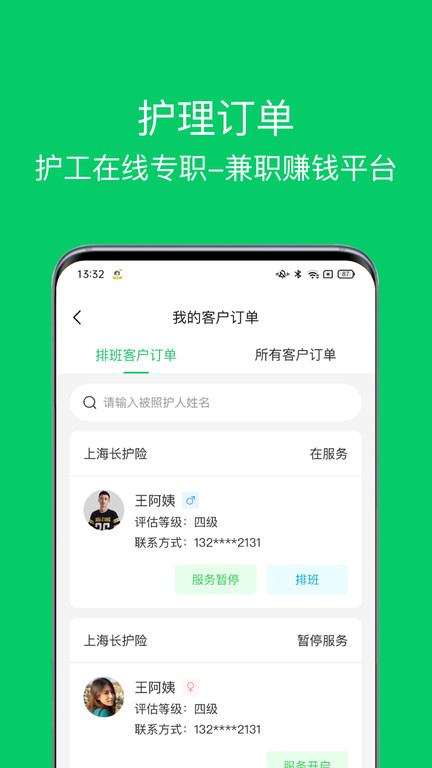 照护365康护端是可以在线进行护理老年人的手机服务软件,带给带给用户非常专业的护理服务,对于老年人生活不便的时候可以在这里进行预约服务,还可以在这里进行兼职护工工作