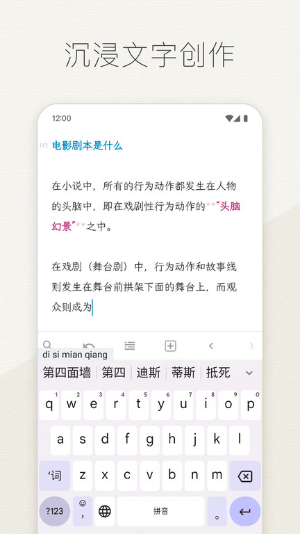 极简设计,纯粹的写作环境,帮助创作者排除一切干扰,专注写作本身。